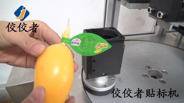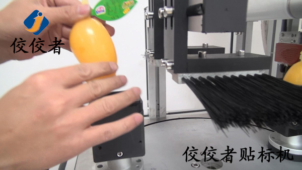這個產品要求的標簽是對折貼在產品上端,因為這產品無法站立起來,所以我們工程師在設計的時候,專門為此設計了一個固定架,只要把產品放在這架子上面,貼標機就很方便的為果凍貼上標簽,這樣既解決了產品放置的問題,也方便了貼標機貼標,這點倒是和電線貼標機的特點有點像。如下圖: