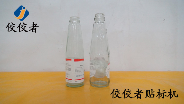 將玻璃瓶放到貼標機上,隨著瓶子的轉動便被貼上了標簽,如下圖: